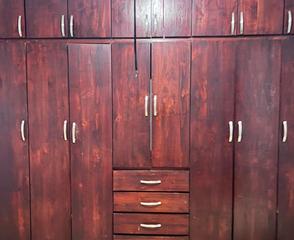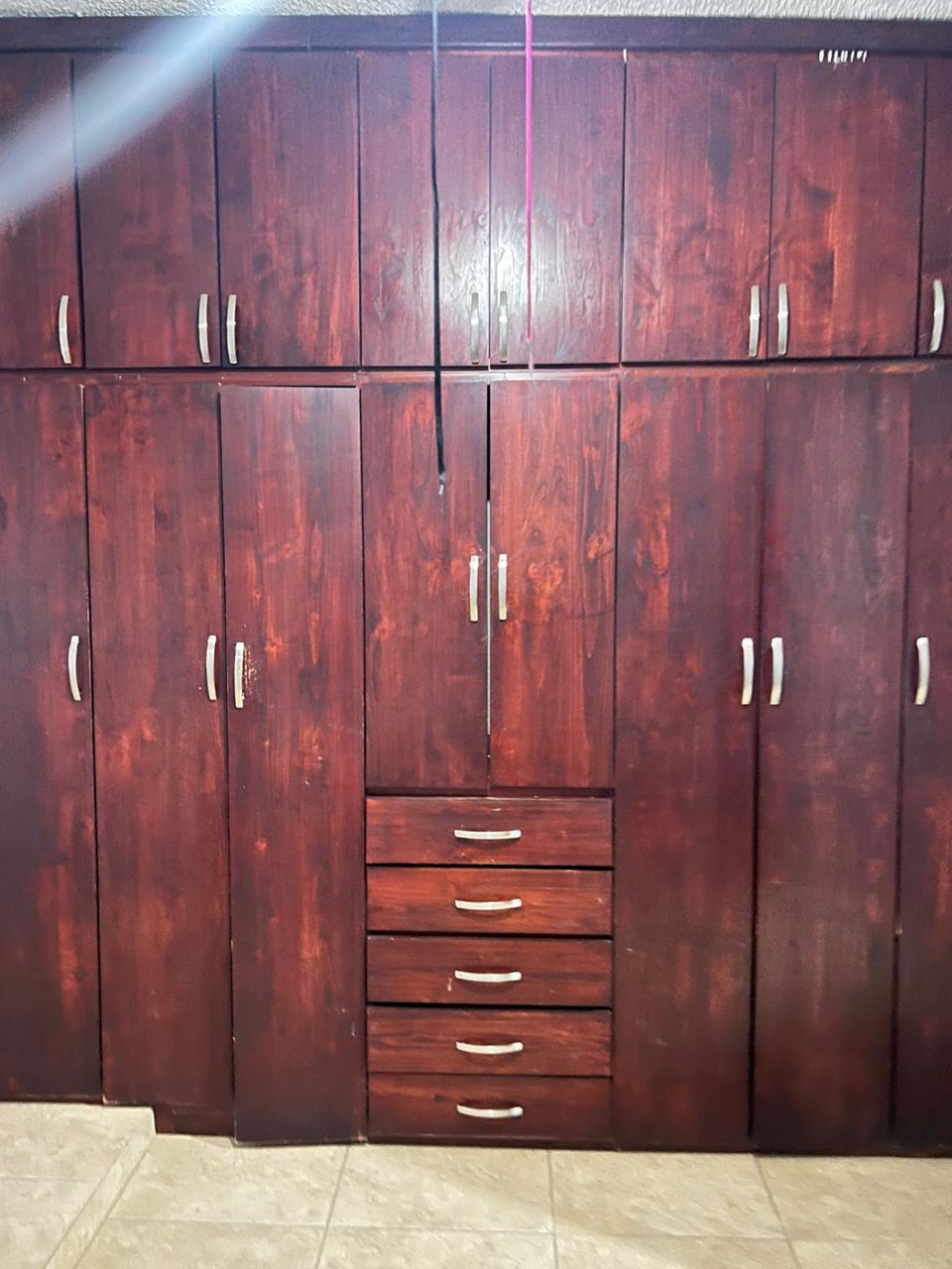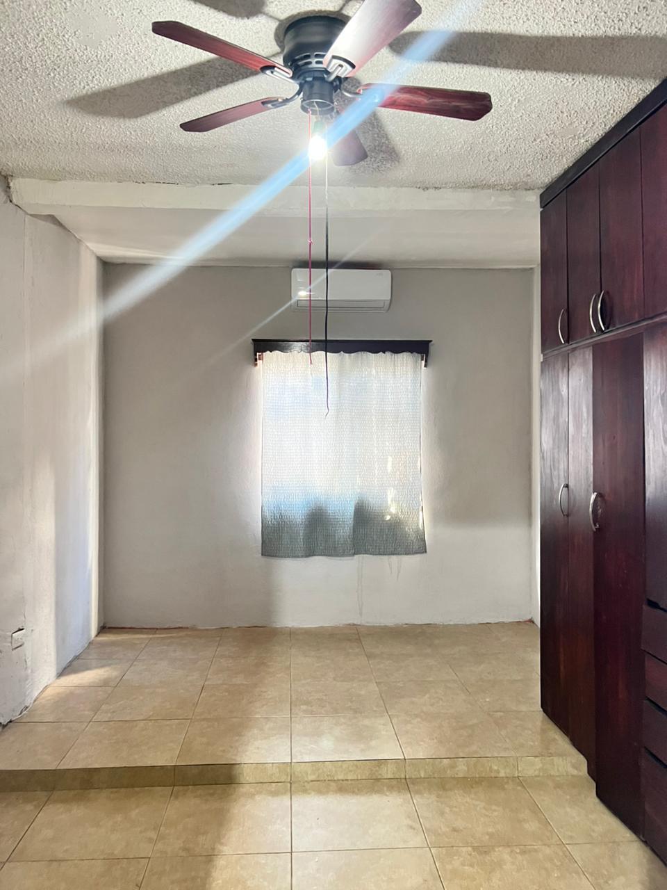 Minisplit y closet de madera en recámara principal, cooler y closet abierto en segunda habitación