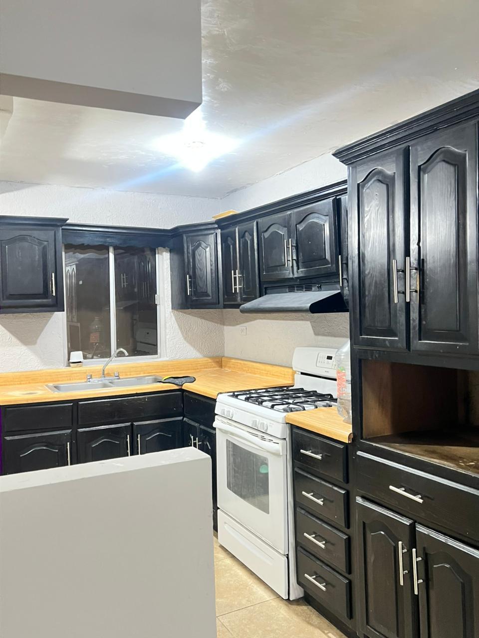-Cocina integral equipada con: estufa con horno, refrigerador amplio, y campana.