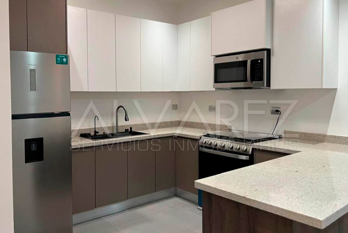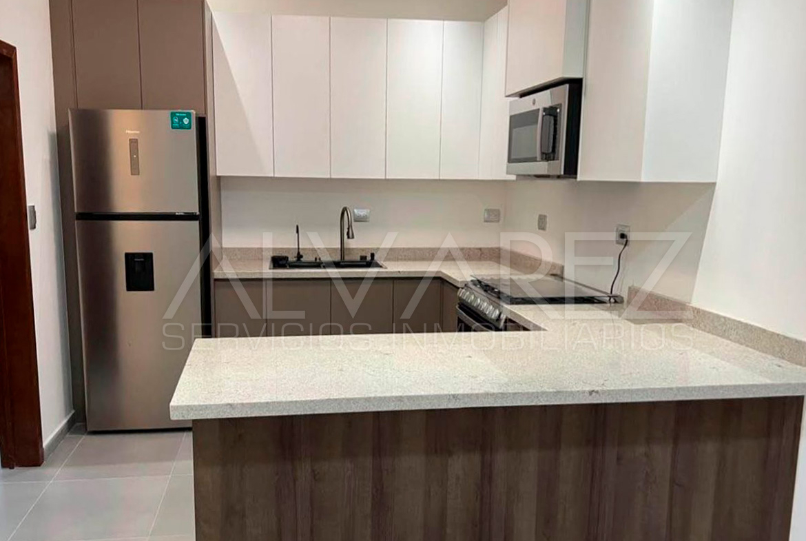 ✅️sala ,comedor ,cocina moderna con estufa y refrigerador .